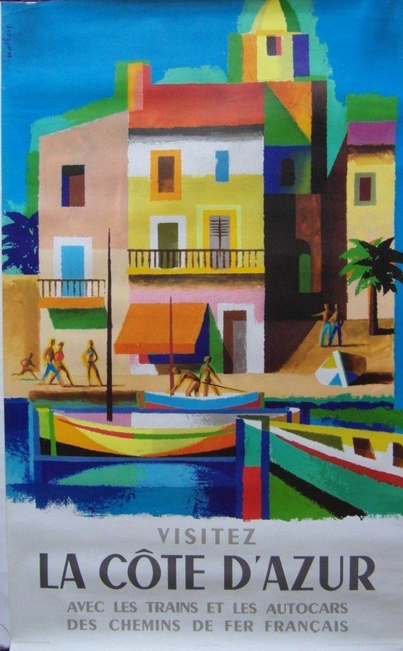 Original 1963 French National Railways Poster Promoting ‘La Cote D’Azur’ Region
