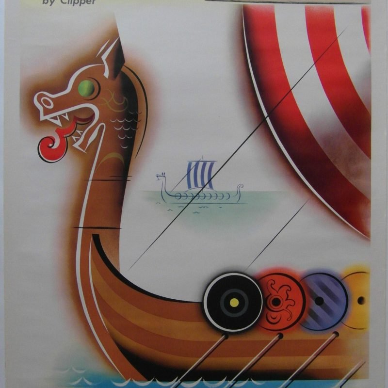 Original 1954 Pan Am travel/destination poster to promote Scandanavia. Artwork by celebrated poster artist Jean Carlu.