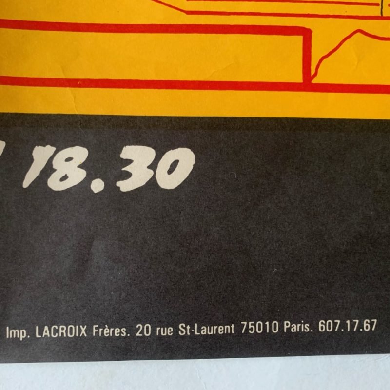 Original large 1981 The Clash Paris concert poster. In September 1981 the Clash played a seven-night residency at the Theatre Mogador in Paris. Great artwork that was used on UK concert posters.