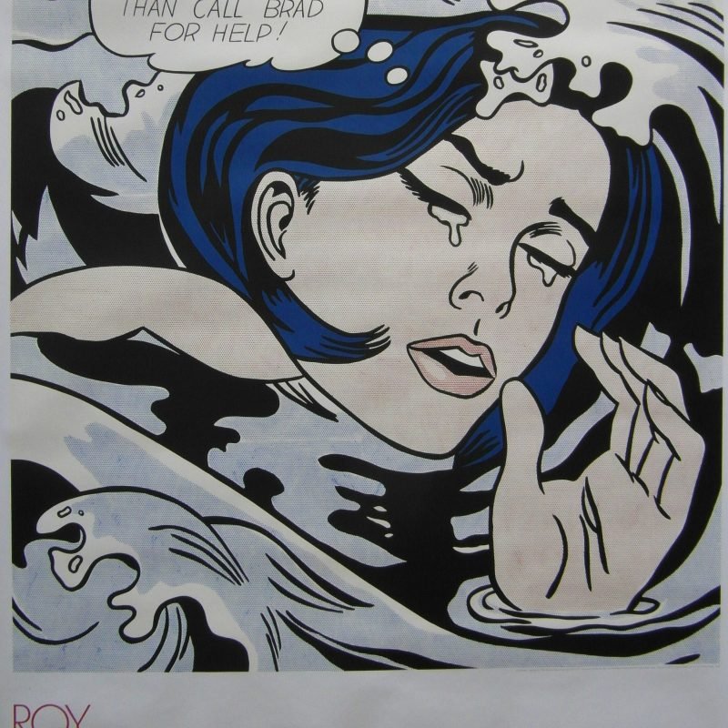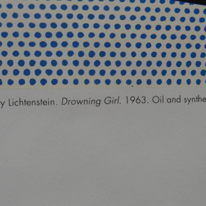 Rare original 1989 Roy Lichtenstein Pop Art poster for an exhibition at the Museum of Modern Art, New York. The poster features a 1963 Lichtenstein painting titled ‘Drowning Girl’. The Serigraph is from an edition size of 1000. The poster would make a significant statement piece.