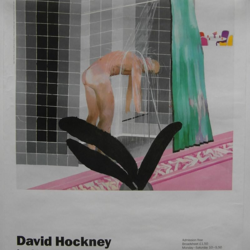 Original 1992 David Hockney Tate Gallery Exhibition Poster. The painting on the poster is titled ‘Man in a Shower, Beverley Hills’.