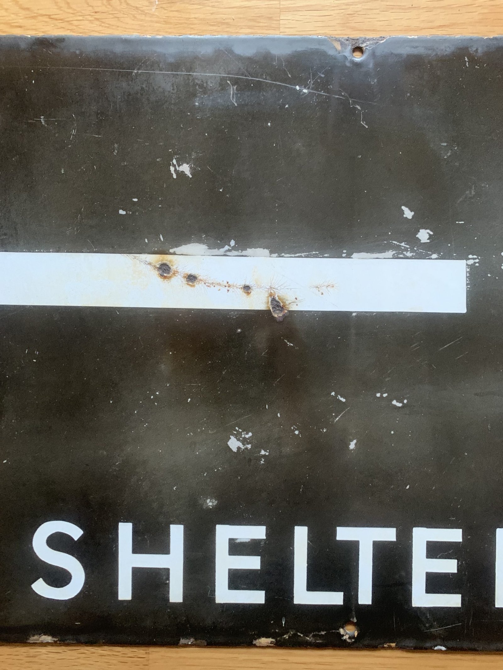 Original WW2 air raid shelter sign. These signs were used to direct members of the public to air raid shelters.